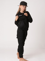 Komplet dziewczęcy czarny -bomberka na napy i spodnie joggery czarne, wykonany z bawełny, Produkt Polski.