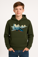 Bluza chłopięca kangurka wkładana przez głowę w kolorze khaki. Posiada oryginalny nadruk Lockheed P-38 Lightning.