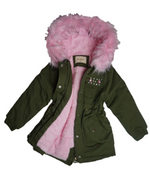 Kurtka zimowa dziewczęca/dziecięca parka z jasno różowym futrem i kapturem