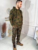 Komplet spodnie i bluza moro z kapturem WZ.93, wyprodukowany w Polsce z wysokogatunkowej bawełny. Jest to dzianina o wysokiej gramaturze, gruba i mięsista. Ma unikalną strukturę – porządny gruby komplet.