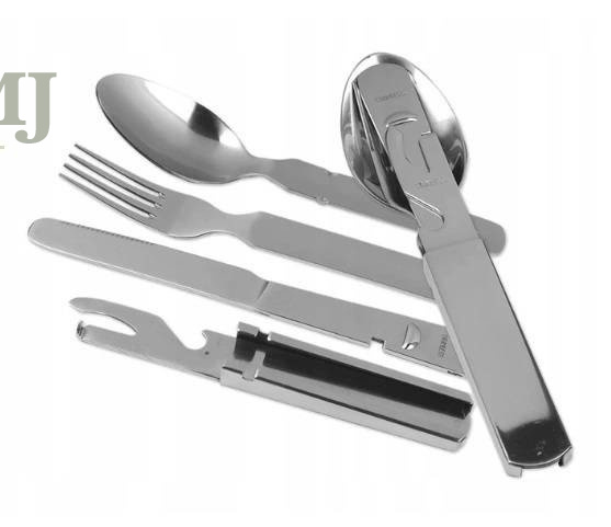 W skład niezbędnika wchodzi: nóż, widelec, łyżka, otwieracz do konserw oraz butelek.