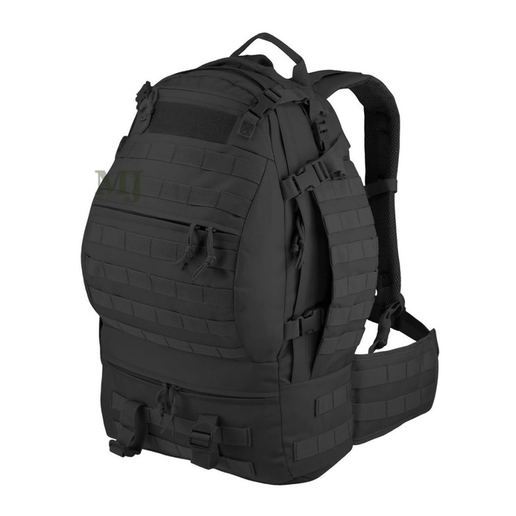 Przód oraz boki plecaka obszyte taśmami montażowymi MOLLE.