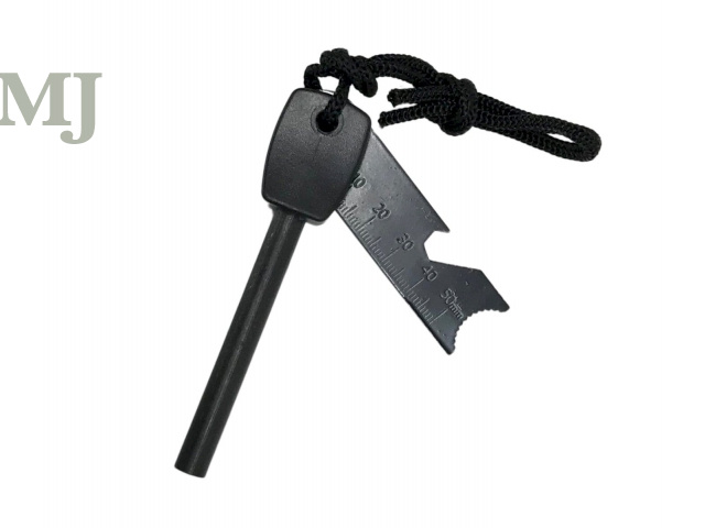 W zestawie z krzesiwem znajduje się iskrownik w postaci ząbkowanej metalowej blaszki, który dodatkowo posiada funkcję otwieracza do butelek. Dzięki swoim kompaktowym rozmiarom całość łatwo zmieści się w kieszeni spodni lub w plecaku, zapewniając mobilność i gotowość do użycia w każdej sytuacji.