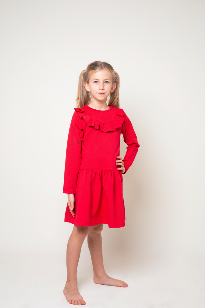 Sukienka świąteczna dziewczęca czerwona falbanka- produkt polski
