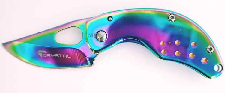 - Wyposażony w unikalny mechanizm wspomagający sprężynę w kolorze tęczy, ten scyzoryk zapewnia szybkie i łatwe rozkładanie ostrza za pomocą lekkiego nacisku na nadgarstek.