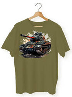 - T-shirt z Krótkim Rękawem w kolorze khaki z nadrukiem Czołg Sherman
