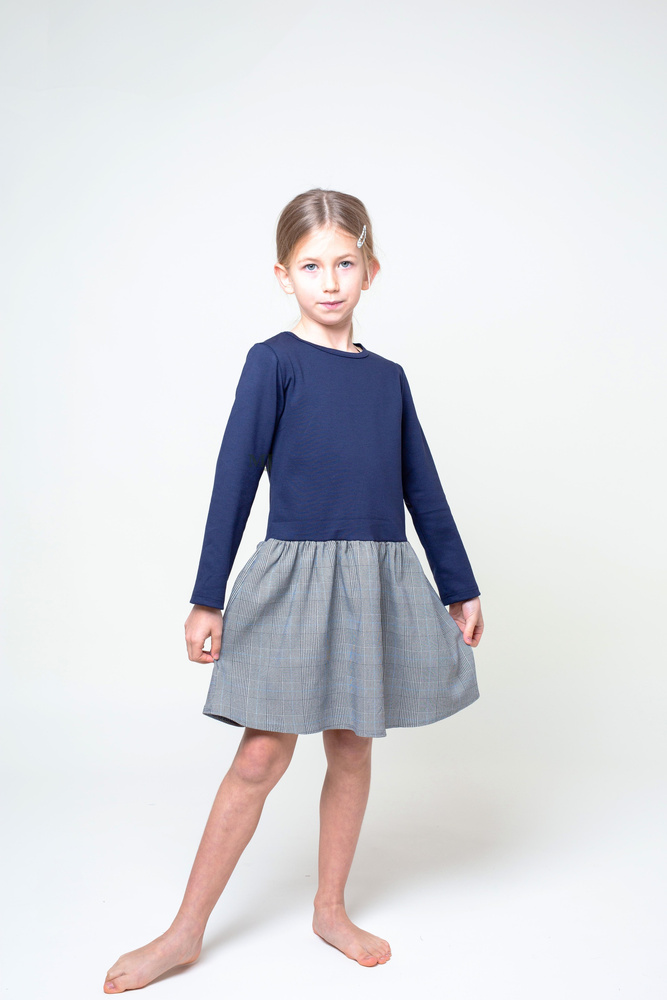 Sukienka świąteczna granatowo-szara- Produkt Polski