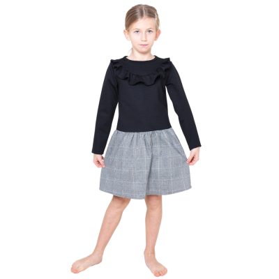 Sukienka świąteczna dziewczęca czarna falbanka szara kratka- Produkt polski