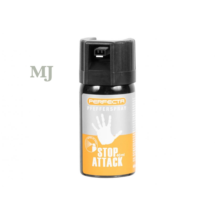 Perfecta Stop Attack stożek 40 ml to skuteczny gaz pieprzowy o zasięgu 4 metrów, który w formie szerokiej chmury uwalnia substancję czynną o 10% stężeniu kapsaicyny.