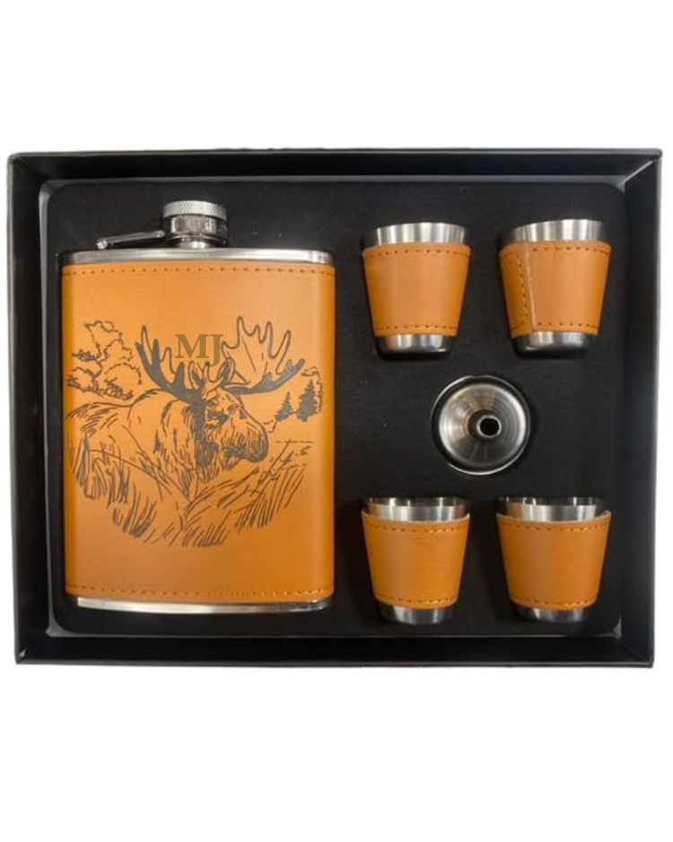 - Piersiówka Obszyta Skórą z Kieliszkami Jeleń.