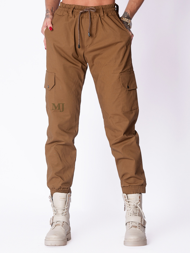 - Spodnie jogger damskie z dwiema bocznymi kieszeniami typ cargo. Wykonane z materiału wojskowego w składzie 58% bawełny i 39% poliester 3% spandex. Jest to model stworzony z myślą o osobach, które lubią styl militarny na codzień.